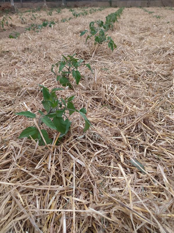 Després d’una Setmana Santa molt atrafegada, ja hem acabat de posar els encoixinats de palla als tomàquets, albergínies, carbassons i pebrots.